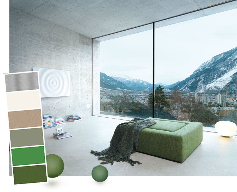 Yeni renklerin mevcut ve gelecekteki konut trendleriyle uyumlu olmasını sağlamak amacıyla Zehnder, konsepti geliştirirken tanınmış renk trendi uzmanlarının uzmanlığından yararlandı. Mimari, iç tasarım, banyo ve oturma odası trendleri ve malzemeler alanındaki uzun vadeli trendler araştırılmış ve nihayetinde yeni 'Renkler Dünyası'na entegre edilmiştir: herkesin kendi yaşam tarzına uygun mükemmel radyatörü bulmasına olanak tanıyan beş modern renk dünyası.