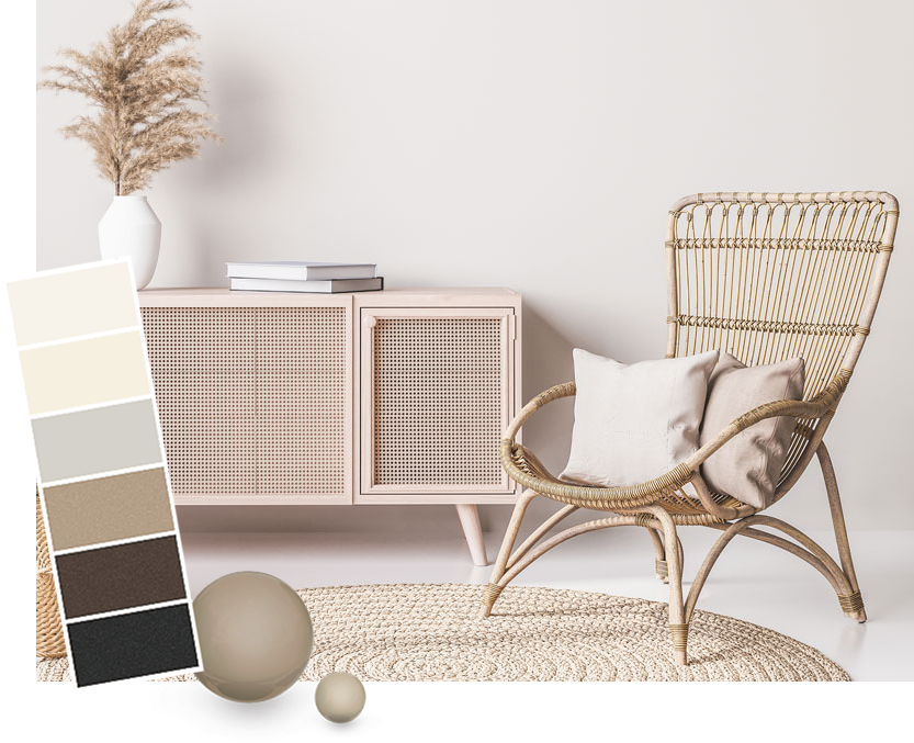 Eviniz rahatlama ve huzurun yeridir. Pürüzlü yüzeyler, fırçalanmış yüzeyler, karışık cila katmanları ve doğal malzemeler güzel bir sığınak yaratır. Doğal olarak kırık beyaz, açık kahverengi ve griler rahatlamak için rahat bir ortamın anahtarıdır. Ahşapla karıştırılan pirinç gibi fırçalanmış metaller modern bir kontrast sağlarken, yuvarlak şekiller ve yumuşak kumaşlar görünümü tamamlıyor.